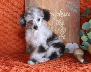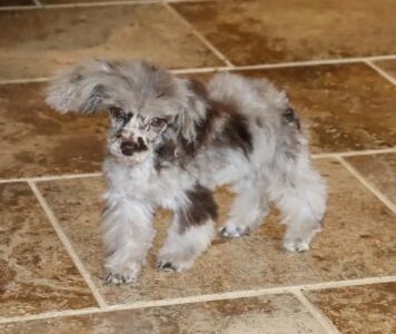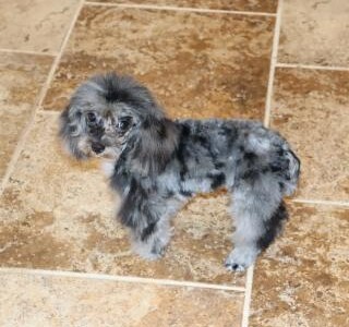 “Tinker” is a AKC Female Blue Merle Poodle with one Blue Eye