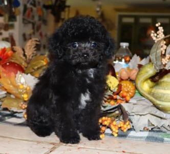 “Ebony” (Ebi) is a Female Black with White Patch on Chest Teacup Poodle.