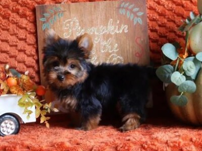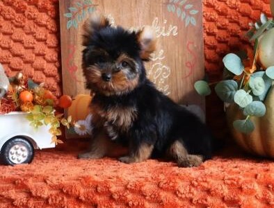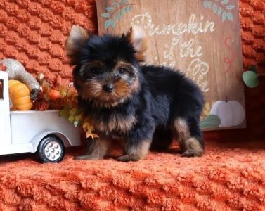 “Pumpkin” is a Female Black and Gold Yorkie.