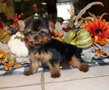We are AKC Teacup and Tiny Toy Yorkie breeders, offering puppies in Traditional, Black and White Parti, and Chocolate colors. Occasionally, we also have Micro Teacup Yorkies for those looking for ultra-tiny companions.
